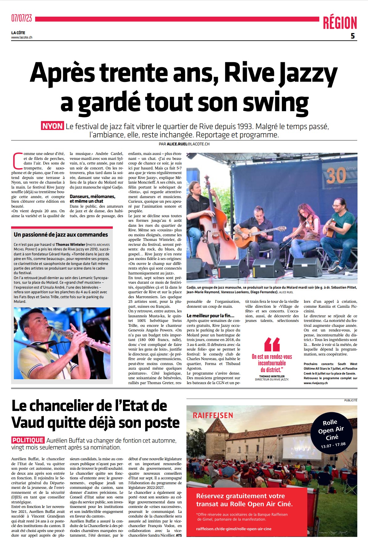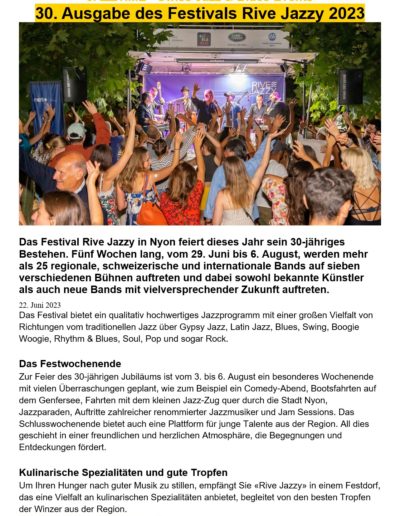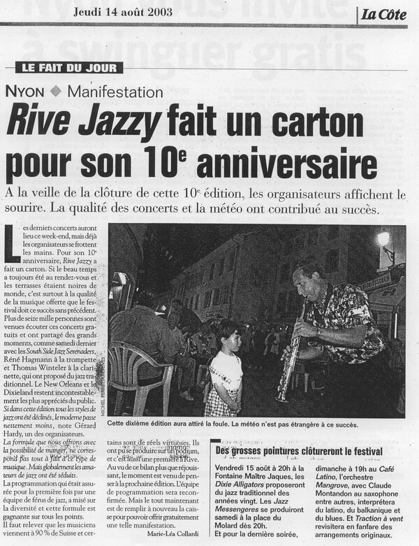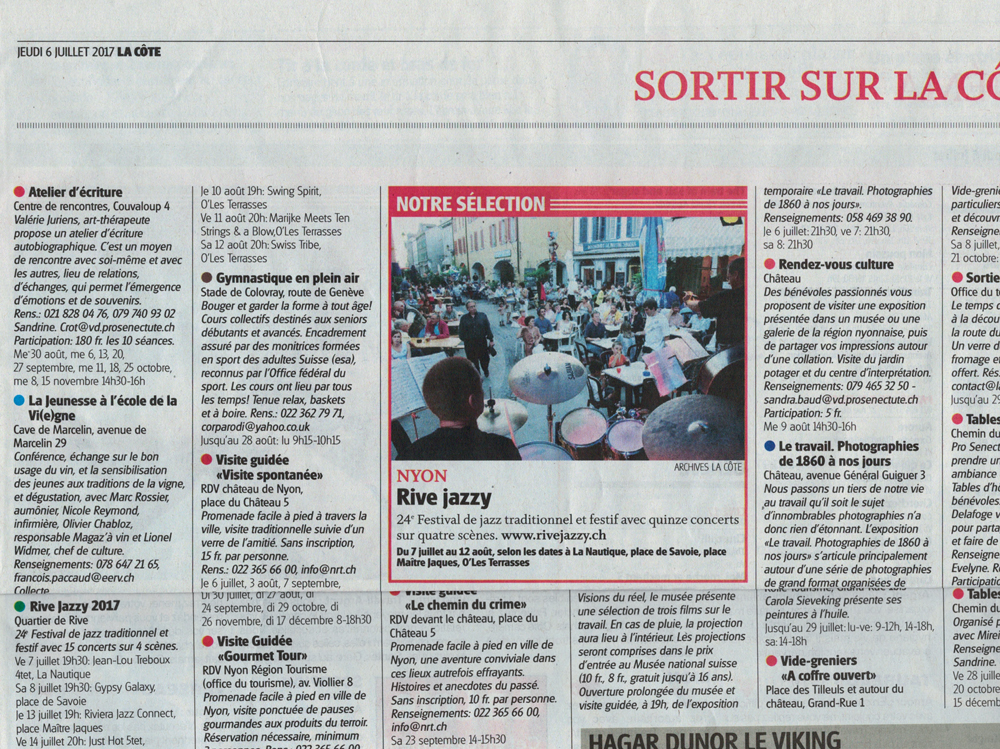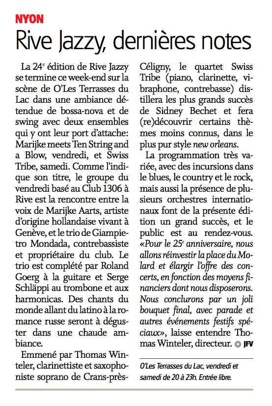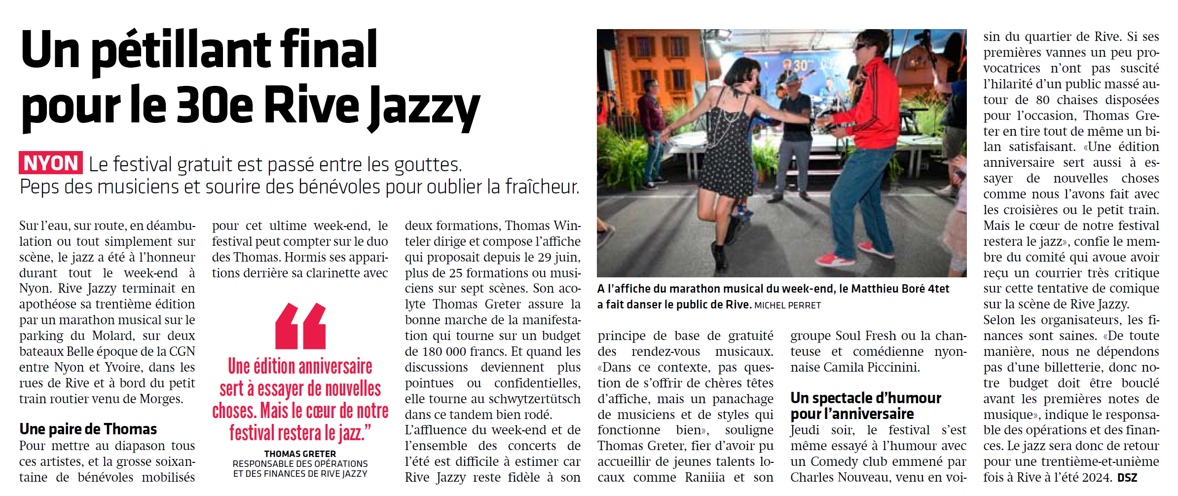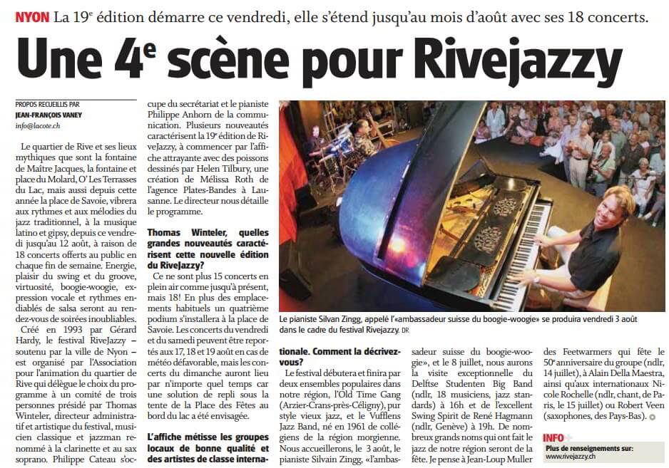 Pour tout interview ou renseignement sur le festival, veuillez vous adresser à Thomas Winteler, directeur du festival par téléphone (+41 76 374 81 63) ou email (info@rivejazzy.ch).