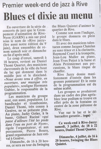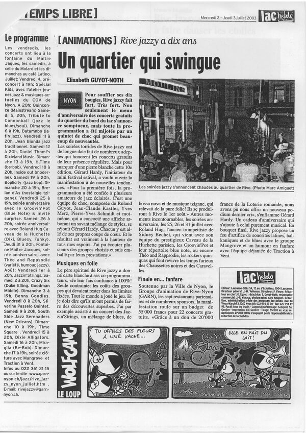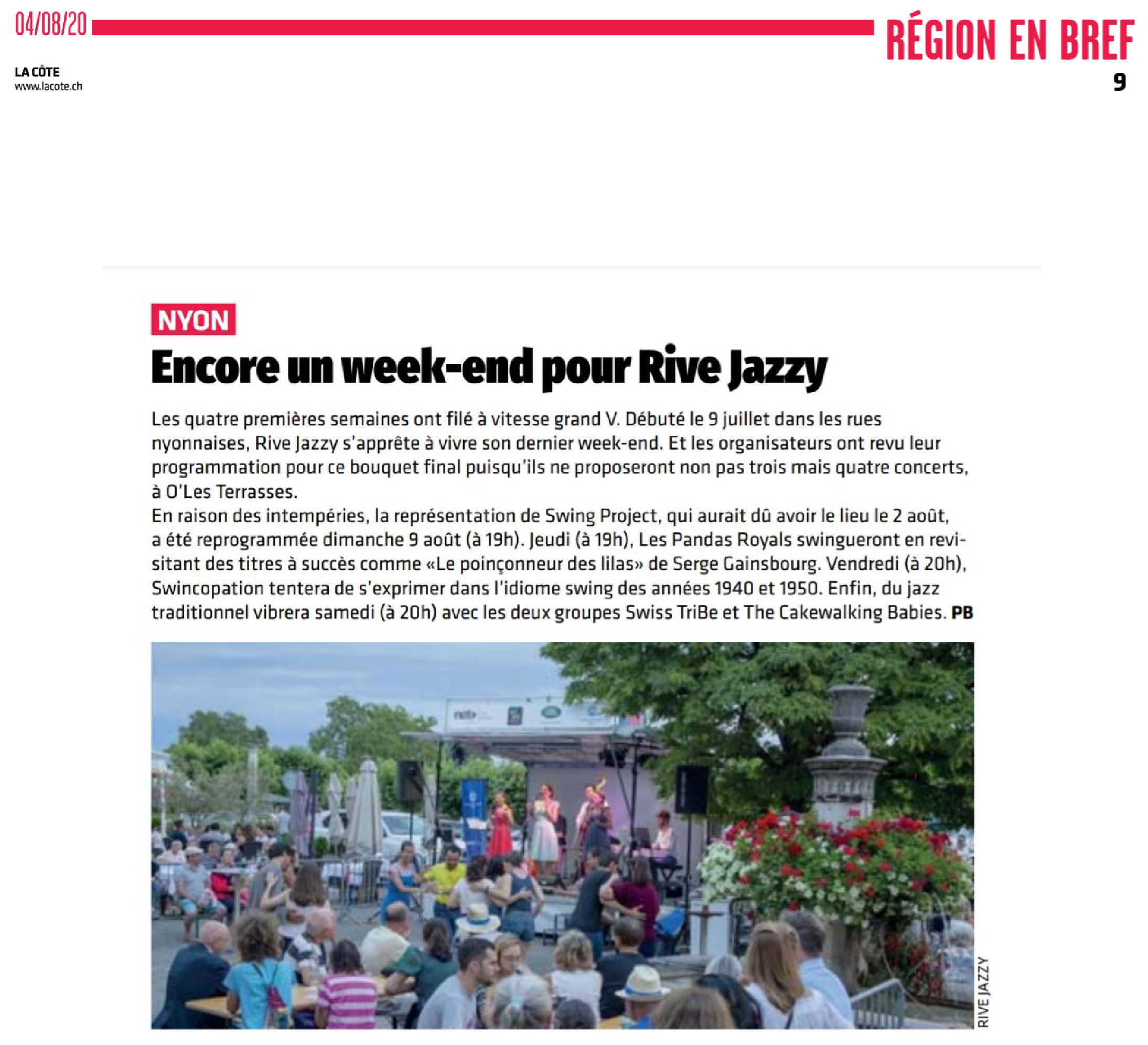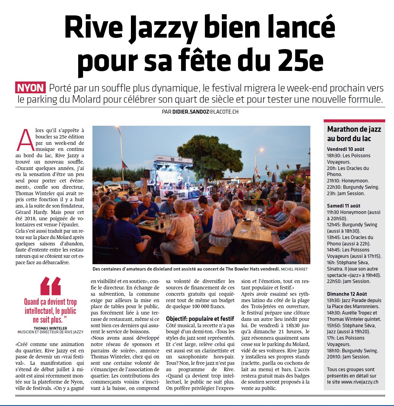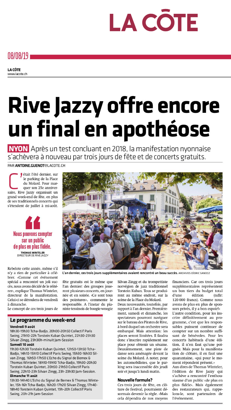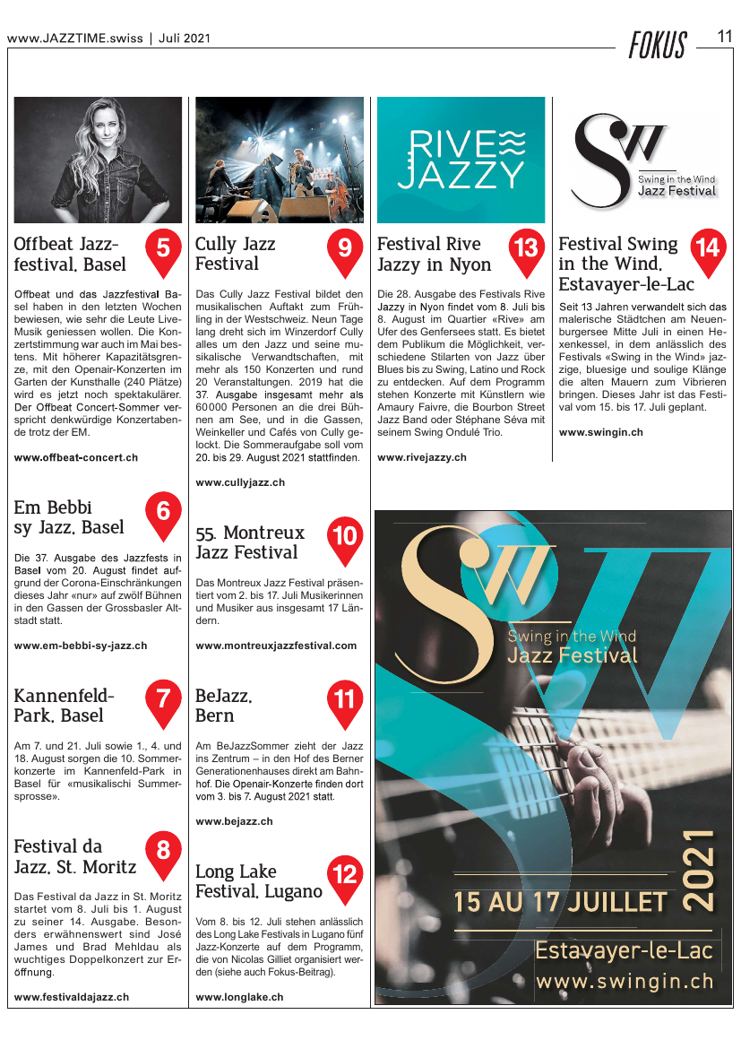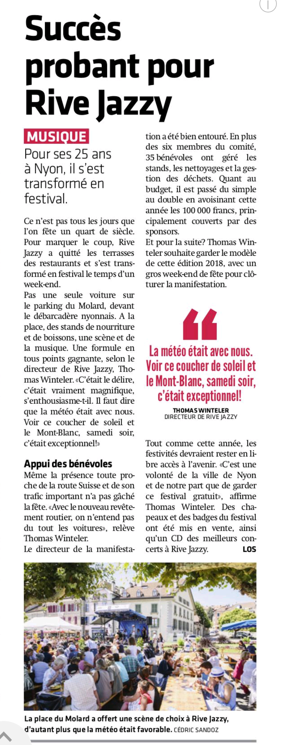 Pour tout interview ou renseignement sur le festival, veuillez vous adresser à Thomas Winteler, directeur du festival par téléphone (+41 76 374 81 63) ou email (info@rivejazzy.ch).